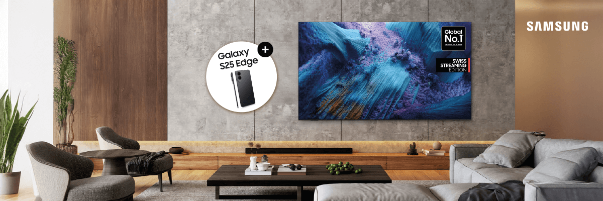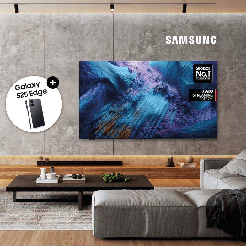 Si tu achètes l’un des téléviseurs Samsung Neo QLED, OLED ou MICRO RGB listés ci-dessous, tu reçois dans le cadre de la Black Friday Premium TV Bundle Promotion un Galaxy S25 Edge (12+512 GB) en Titanium Jetblack – offert.